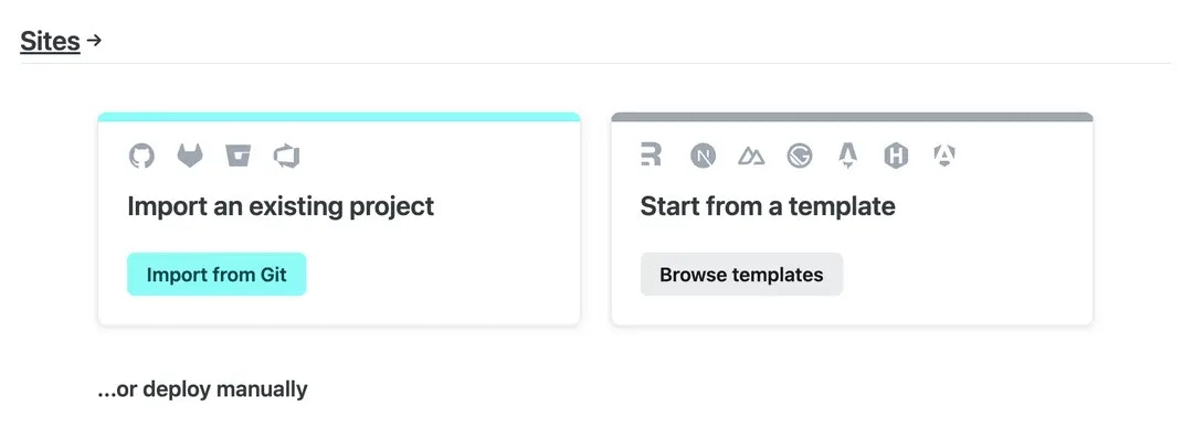 After creating an account, you should see a prompt on the dashboard to create a new site from a Git repository. Click on the Import from Git button.