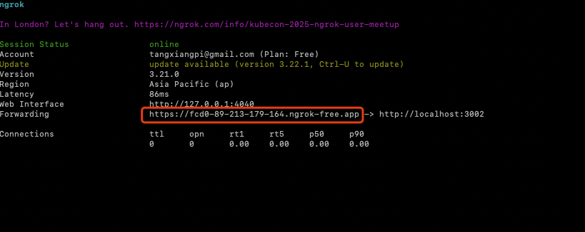 apps/api by default. If your web development server is not port 3002, please modify the port in the ngrok command.